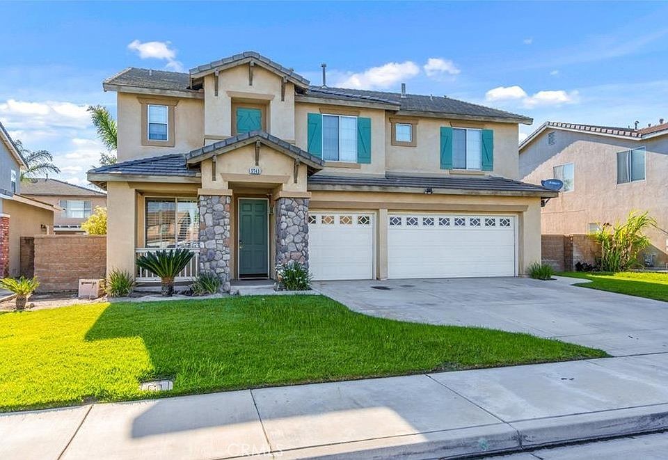 Welcome to 5743 Carolinas Lane, a beautifully upgraded 5-bedroom, 3-bathroom home nestled in the highly desirable Eastvale community. This turnkey residence features no HOA fees and boasts a private rockscape pool and spa, perfect for summer days and night swims with color-changing lights for ambiance.