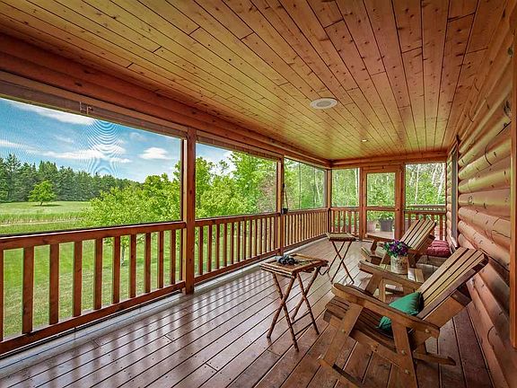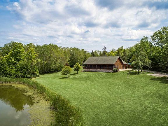 Sitting on 39+ acres at the edge of the Huron National Forest, rests this 2450 SF+/- spacious 1/2 log sided home with sunset panoramas from the expansive screened-in front porch and glistening views of the pond. Take advantage of the federal land just 100+/- yards from your front door to hunt deer, turkey, grouse, black bears and more. This property features a turnkey 1 1/4 story main house with 4 BED 3 Bath and a detached 729 SF+/- guesthouse with 1 BED and 1 Bath. Both dwellings offer two car attached garages. The main house boasts three levels of custom pine interiors with a generous amount of storage space. The lower level features a wide-open game room with pool table, bar and sitting area, wood burning stove and walkout to the great outdoors. A peaked ceiling highlights the spacious main level and features a decorative stone laid wood burning fireplace, sizable kitchen with center island, unique office space, custom shelving and cabinetry throughout and a master en-suite plus two large bedrooms and bath. The separate side entrance and over-sized mudroom is perfect for greeting visitors. The upstairs loft is a welcoming space that could sleep up to 6 or more guests. The home is pre-wired for security and has a first-rate sound system streaming to every room. When the nightfalls, experience the dark skies of Michigan, perfect for stargazing from the tremendous front porch. Revel in the abundance of activities in the area from hunting, to world-class trout fishing, canoeing, kayaking and snowmobiling. Only three hours north of Detroit, 2.5 miles from the snowmobile trailhead and within 10 miles of the Sixty Lakes Area and the AuSable River, this idyllic hideaway if the perfect place to unplug, retire, or make your second home away from home.