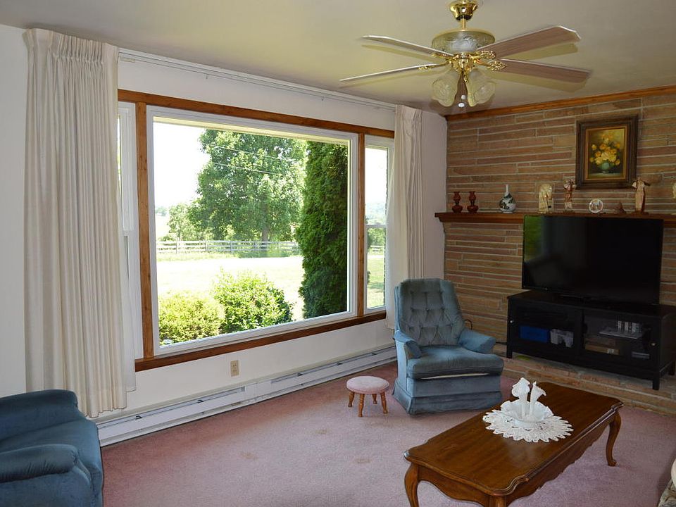 This beautiful 15 acre property features an all brick 3BR/1.5BA ranch home with partially finished basement. The home offers large rooms, wide hallway, 2 fireplaces, and a 2-car attached carport with extra storage. The home sits on 15 mostly-level acres, with over 3 acres open pasture land. Sit on the welcoming covered side porch and enjoy the 180 degree long-range pastoral views. Replacement windows, cedar-lined closets, hardwoods under carpet, and pantry are just some of the nice features of this home. Don't miss your chance - call today to tour!