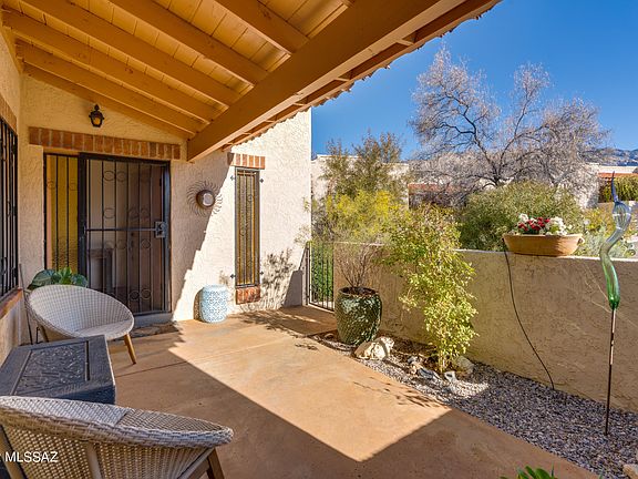 Don't miss your chance at this fabulous townhome in highly desirable Catalina Foothills location!! You will feel at home the instant you walk in this traditional southwest townhome. Featuring two beds, two baths, Saltillo tile floors & beehive fireplace with abundant natural light. Updated kitchen w/SS appliances, Corian counters and newer cabinets. Both bathrooms renovated, primary w/dual vanity and tiled shower. Brand new A/C & Furnace installed 2022, updated light fixatures & fan. Plus, all new double pane windows w/transferable warranty. Enjoy the private covered semi-enclose back patio or the mountain view from the cozy front courtyard. Attached single car garage off back accessed by private road and adjacent to open space. Small quiet community w/gated pool. Will not last long!!