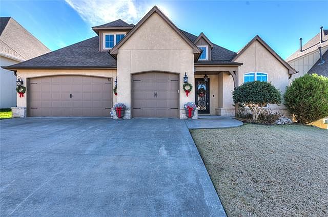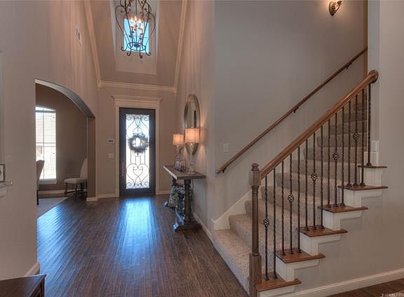 Entertain your guests & Family in this Immaculate Bixby Home Walk into a spacious living room w/large windows, exposed wood beams & stone fireplace Kitchen is open to living room/Formal dining areas Beautiful hand scraped floors, Master is large w/walk in closet luxurious master bath complete w/soaker tub tile shower & entry to laundry room 2nd bedroom downstairs is spacious and has a private bath. Upstairs features 2 bedrooms tons of closet Bonus room/Media room Nice yard w/Privacy fence