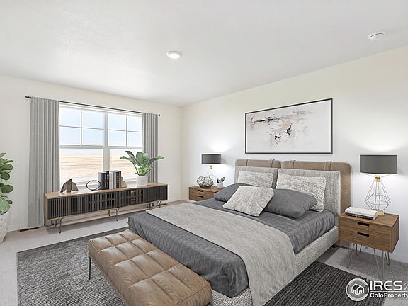 Introducing the stunning Pine floorplan, this 4 bedroom, 2.5 bath home offers both style and functionality. Step through the welcoming front porch that sits near the 2.5 car garage, and into the spacious open-concept main floor, where the kitchen, dining, and living areas seamlessly flow together, perfect for gatherings of all kinds. The kitchen features a gray quartz island, white classic cabinets, refrigerator, and a gas range. Upstairs, discover 3 rooms with versatile space that separates them from the primary. Retreat to the luxurious primary suite, complete with an ensuite bath featuring double sinks and two walk-in closet. With the convenience of an upstairs laundry room, chores become effortless. Washer, dryer, and blinds also included. Enjoy the low-maintenance lifestyle with included landscaping, and modern amenities such as A/C, a tankless water heater, and a smart home package. Explore the community's walking trails and look forward to future access to the Power Trail, all while being conveniently located near shopping and recreational facilities. Don't miss your chance to experience the best of Fort Collins living at Hansen Farm! ***Photos are representative and not of actual home***