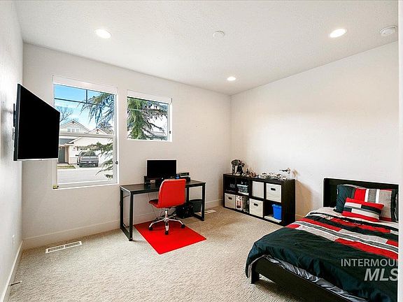 Nestled in a quiet NW Boise neighborhood, this meticulously maintained home is completely move in ready! Partial foothills view and an incredibly convenient location with easy access to downtown. With its vaulted ceilings, SafetyCore flooring, and gorgeous electric fireplace, the spacious great room design fuses the kitchen and living room for the perfect entertaining space. The extra large quartz-topped kitchen island and custom cabinetry with an oversized pantry is a chef's dream. The living and dining area expand through two extra-wide sliding doors where you can spend the evening soaking in your own hot tub on the covered patio. The master suite, with its own separate outdoor patio, features vaulted ceilings, a fully tiled shower, dual vanities and a roomy walk in closet. The bonus/flex room is the perfect work-from-home space. The laundry room comes with a convenient utility sink and the 3 car garage has enough room for all your tools and toys! Solar panels include a transferrable 25yr warranty.