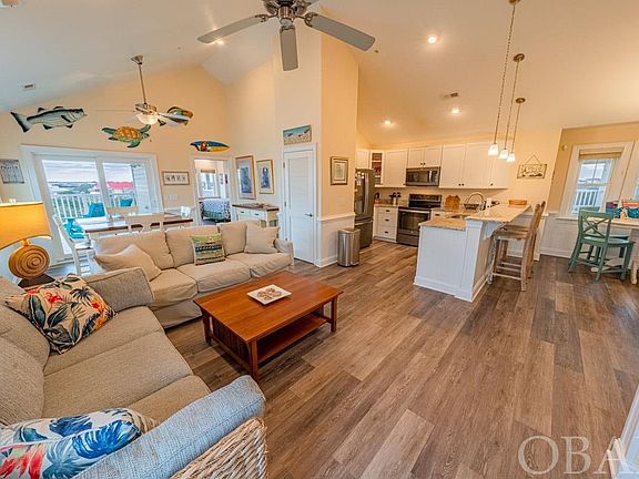 This private top floor end unit with vaulted ceilings, elevator, boat slip with a pool is conveniently situated in Hatteras Village's upscale Slash Creek Condo Community. This two bedroom, two and a half bath condo provides first class accommodations with sound and canal views, as well as a distant ocean view. Watch the sun rise and set on the private covered deck. Two master bedrooms, each with en-suite bathrooms. A king bedroom with jacuzzi bath & built-in window seat opens to shaded deck. The second bedroom features a full-sized bed plus additional twin & trundle option. OBX Penthouse Suite is a fantastic get a way within the heart of Hatteras Village. A boat slip conveys and is right out the door with boat trailer parking onsite along with community fish-cleaning station and charcoal grills on the manicured grounds. Great rental history and shows like brand new! Just a few minutes from the Ferry to Ocracoke and the beach is a 10-minute walk or 4-minute drive with parking available. Enjoy the Island life in the Hatteras Village golf cart community. Easy living at its best!