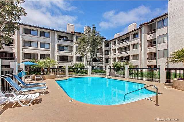 TOP FLOOR UNIT - GORGEOUS VIEWS and MOVE IN READY! Beautiful 3 bedroom/2 bath corner unit at the gated community of Presidio Place featuring double height ceilings, ample light, two balconies, fireplace with panoramic views of pool and courtyards. Convenient washer/dryer combo in unit. 2 assigned parking spaces. Complex features pool/spa, club house, gym, 24hr guard & beautiful common areas. Centrally located close to beaches, shopping, restaurants, Downtown, and freeways I5, I163, I8 & I15.One Year Lease, Security Deposit, 1st month Rent