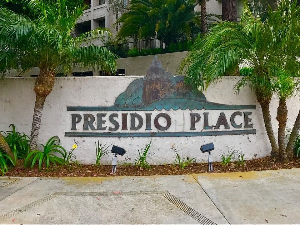 This top floor, 2 bed, 2bath condo is located in the popular Presidio Place Complex on Friars Road. Includes great courtyard views of the pool area, bright sunny rooms, with a large living room, dining room, sparking kitchen with plenty of cabinets, and two large bedrooms with large closet areas. Two full bath areas. Private balcony. Very comfortable unit and serene surroundings abound. One assigned, underground parking space provided, extensive 24 hour security, plus secure package delivery at the guard station and more. The Presidio in Fashion Valley is an elegant, gated complex with resort style amenities including beautiful green belts and walking paths. It is well-maintained with landscaping, lagoons with fountains, two pools and tennis courts. This highly desirable central location provides easy access to the Fashion Valley mall, USC, freeways (8, 163 and 5) , YMCA, trolley, beaches and downtown. The complex also has a 24 security service and guard station, guest parking, and bicycle storage. Rent $2,225. Deposit $2,225, Immediate occupancy. Tenant pays electric. No pets or smokers please. Call or text Five Star Properties at (619) 539-3295 or at 619-230-5582, DRE 02000260 Tenant pays electric. Water provided by tenant