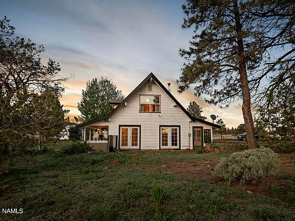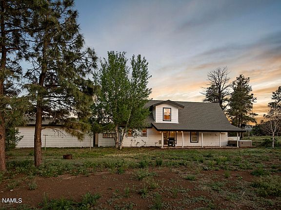 Welcome to the Cozy Cottage on 5 acres, with easement access to the National Forest! This home has all the good vibes, with views of the San Fransisco Peaks, amazing sunsets, relaxing coy-pond fountain, and tons of space to do whatever you want. The kitchen has granite countertops, custom cabinetry, farmhouse sink, brass fixtures, stainless steel appliances, and views to the pond. Enjoy a spacious living-room with a wood burning fireplace and incredible views of the peaks. The home has all of the character in the world, with custom woodwork, custom mantle, custom bar-top, and amazing rustic beams. Upstairs bathroom recently remodeled. The sunroom makes for a great place to grow produce, or store firewood. This property will not disappoint you. No HOA! Schedule your private showing today!