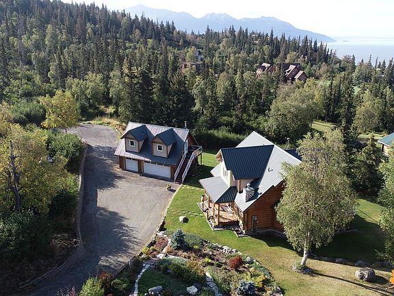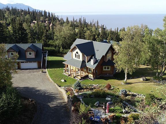 Spectacular custom log home on 2 acres. Secluded, yet close to all the amenities of Anchorage. Views of the Chugach and Alaska Ranges and Turnagain Arm, manicured lawn and gardens. Nature/ski trails and invisible pet fence around perimeter. Spectacular views from all angles of the home and property. Spacious open and covered decks. There is a guest house/ MIL above the garage.