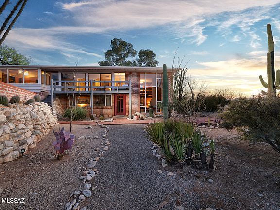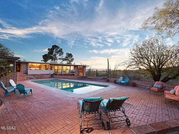 Rare Tom Gist designed mid-century custom home on 1.64 acres in the ''Old Foothills''. 1st time ever on the market. Spectacular mountain views abound from this private estate. Unique two story living room with a wall of glass and one of a kind floating Kiva fireplace. Primary includes a bay window as well as a cozy wood floored loft with bookcases. Fabulous outdoor covered living space sits among what feels like a nature preserve. Swim in the shadow of the Catalina Mountains. This home was positioned for ultimate views and privacy. Living room, den, guest suite and office on lower level. Primary bedroom, 2 additional bedrooms, kitchen, dining and family room on the upper level. Entrances at both levels. Floorplan attached in documents.