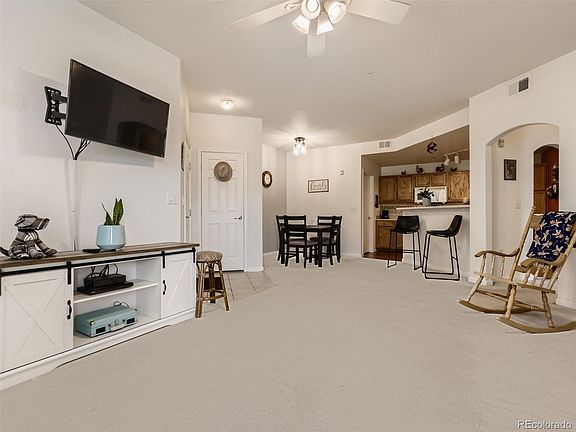Welcome home to this well-maintained 1 bed, 1 bath First Creek Farms condo! Step inside to this beautifully open floorplan with lots of natural light. Enjoy your morning coffee on the large patio that can be accessed from both the bedroom and living room. Entertain in your spacious kitchen that features laminate wood flooring, breakfast bar and pantry. Let's not forget the large laundry area just off the kitchen and the owned storage unit! First Creek Farm is a gated community that includes a swimming pool, hot tub, fitness center, clubhouse, picnic area, and kids' play area. The community is located minutes from DIA, 5 minutes from the Gaylord Rockies Resort, 25 minutes from DTC, and just 30 minutes to Downtown Denver! Schedule your showing today because this one won't last long!!