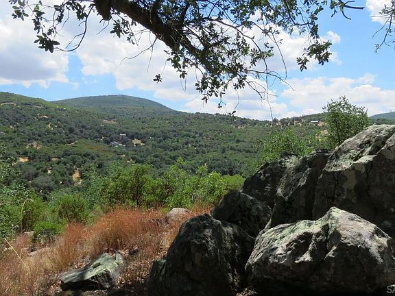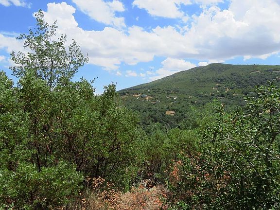 Beautiful lot at top of hill on Poco Montana in the off-grid community of Cuyamaca Woods. Some oaks, young pines, lots of Manzanita, some undergrowth in some areas. Trails through Manzanita grove, rock outcroppings, views in all directions. Dirt driveway with loop at end. Nice useable spaces. Gate at property entrance. Well on property, has only been used for irrigation. Well is 510 ft, has Variable Frequency Drive Pump, pressure tank. Est. 30 gpm when drilled. Well tested March 2023. Partially completed cinder block building with reinforced walls houses pressure tank. Building needs roof, door and window. Five water spigots with hose housing located around the property for easy irrigation to some areas.