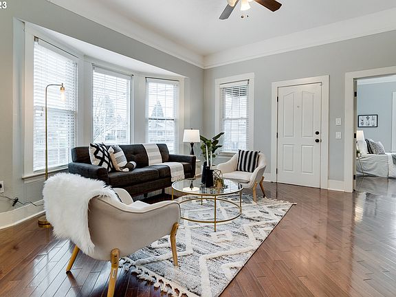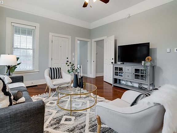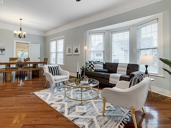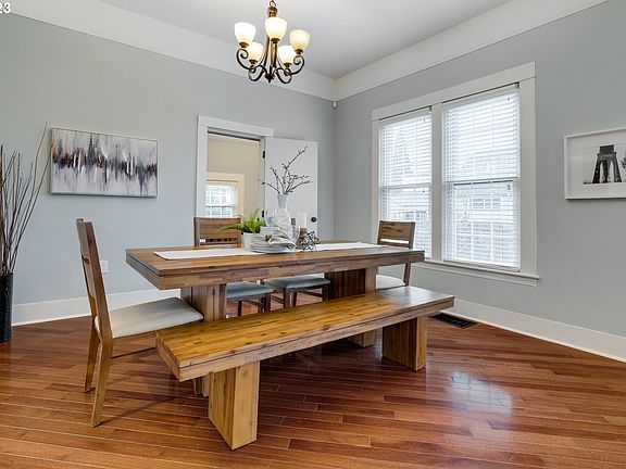 Light-filled floor plan w/ period details throughout: diagonal hrdwd floors, high ceilings, crown moldings, wainscoting, & oversized windows. Expansive kitchen w/ island, quartz counters, gorgeous cabinets, SS appliances, gas range, & storage. Spacious bdrms w/ good sized closets, & an office/den. Unfinished bsmt offers storage & laundry. Corner lot w/ lovely fenced outdoor space, large yard, garden beds, & shed. Desirable location; steps to FOPO and Woodstock districts, local parks, & transit [Home Energy Score = 3. HES Report at https://rpt.greenbuildingregistry.com/hes/OR10209624]