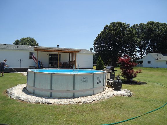 REDUCED PRICE! This nice inviting home is located in the Saulston Community. Features include open floor plan into living room, dining room and kitchen; large master suite and bath with dual sinks, laminate flooring, new carpet and upgraded fixtures. Lots of cabinet space and spacious laundry room off of kitchen. A large 12 x 14 covered deck off of back of home with a 240 sq ft concrete patio leading to a beautiful fire pit area. Home includes a 638 sq ft wired utility building / workshop with covered porch. Lots of storage space or a great man cave. A must see.