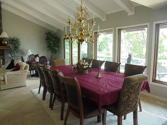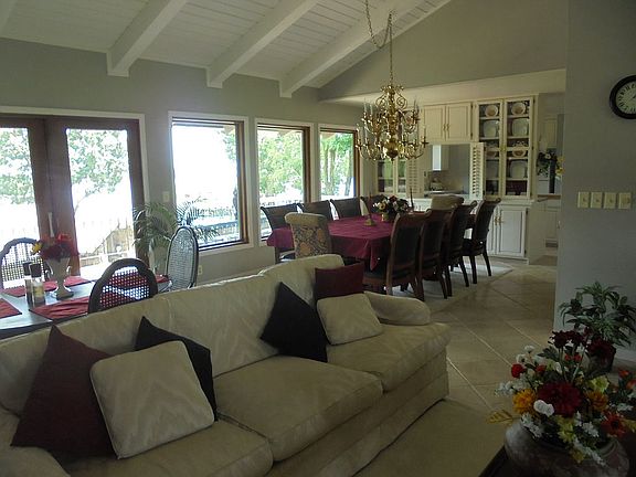 This home has all the charm one is looking for in a well appointed lake home. Beautifully and comfortably decorated. Open living area w/vaulted ceiling. Formal dining w/wet bar. Open kitchen w/plenty of cooking space. There is a room off of the kitchen currently serving as the third bedroom or may be an office. Upstairs are two well appointed bedrooms. There is even a cubby hole for the kids to sleep in. Nice lake view from the deck. Beautifully landscaped. Golf cart storage. Close to pool, golf and club house.