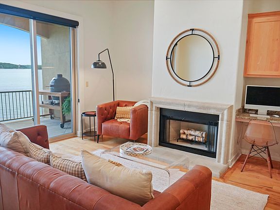 A sought after location close to all the amenities that Shangri-La has to offer. Located in a the gated community of Pointe Marin this unit is part of a small group of five condos. Walking into the unit you immediately see nothing but lake. The view is fantastic with a 180 degree lake view. Open living area with kitchen and large pantry. Lower level has two bedrooms, bath and additional space to use as a workout room or office. The third level features a large master suite with a bank of windows for another killer view of the lake. Large bath with custom features. Three balconies to enjoy the outdoors and lake view. The courtyard features a dipping pool and fireplace and is a favorite hangout of the owners. Only unit available in the complex.