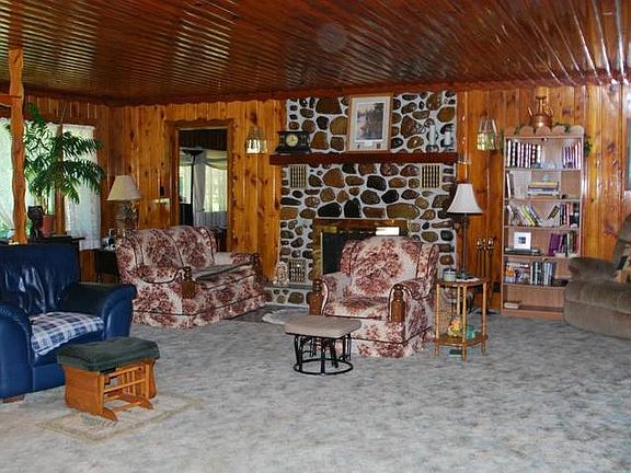 RUSTIC COLONY RAMBLER - Set among towering pines on 1.31 acres and lovingly maintained over a span of 44 years. Perfect for a large family with room to spare or two families as there is a main house with In-Law quarters that can be accessed by a hallway or its own separate entrance. The Three Season Room serves as the entrance to a pine paneled Living Room/Dining area punctuated with a wood burning fireplace at each end of a 47x33 room. The brightly lit eat-in Kitchen features a Breakfast Bar, built-in oven and cooktop. Split Bedroom floor plan provides a private Master Bedroom retreat. The In-Law Quarters consists of a Great Room (18x21), Bedroom & Bath. Two outbuildings - cottage/bunkhouse(18x11) and a garage/workshop(36x19). Off water taxes, but close to the DNR Boulder Lake Boat Landing on Airport Rd or put your canoe/kayak in at the grass Town boat landing at the end of Colony Ln. This is a must see to experience all it has to offer!
