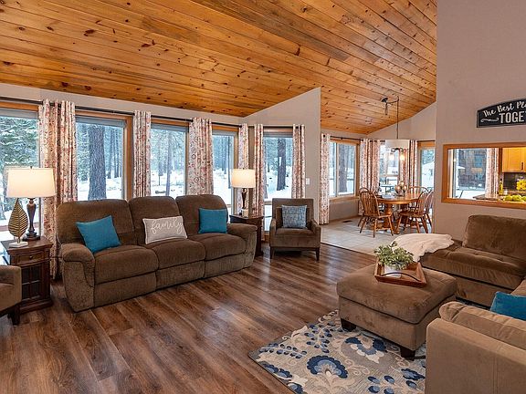 Welcome home to this serene retreat located in the heart of Sunriver backing to forested common area that gives a sense of living in the pines. This well-appointed 2,620 sq. ft. home exudes mountain charm and creates a warm welcome for family and friends with open flowing living spaces and fantastic separation of sleeping areas. Room for all with 5-bedrooms (2-primary suites on main), bunkroom, and 4-baths. Gourmet kitchen with granite countertops, stainless appliances, and plentiful prep space offers seamless entertaining with multiple doors to the deck and BBQ area. Relax in nature and watch wildlife from the expansive deck and paver patio. Soak in the hot tub under the stars after a day of play. Oversized 2-car garage with workshop area. Uncommon parking for 7-vehicles. Updates include new roof, tankless water heater, LVP flooring, and paver patio. Proximity to Ft. Rock Park, bike path and the resort amenities make this a multigenerational oasis. Create your Sunriver legacy