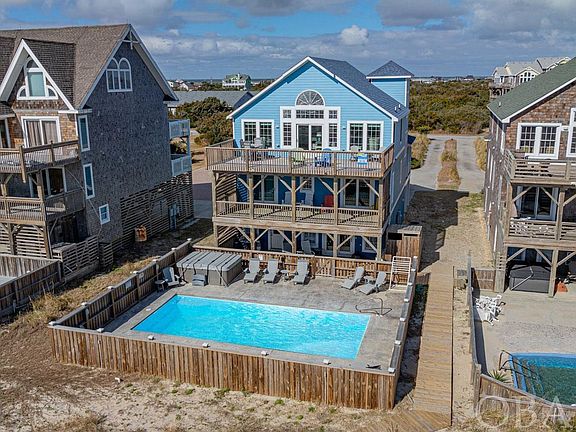 Welcome to "SkyFall," an exquisite luxury oceanfront residence that epitomizes dreamlike living. Extensively remodeled in 2018, this stunning home features new siding, a new pool, roof, paint, hot tub, and high-end furnishings, among other upgrades. Not only does it offer expansive, unobstructed views of the ocean, but it also boasts an impressive rental income of $239,000 in 2023 and already $215,000 on the books for 2024. The serene location allows the soothing sound of ocean waves to lull you to sleep and provides a perfect spot for dolphin watching during your morning coffee. The property includes a large, private pool and a spacious hot tub, complemented by a covered porch ideal for entertaining and an outdoor shower for added convenience. The first floor is a haven of fun with a vintage baseball-themed game room equipped with a pool table, wet bar, kitchenette, and a home theater featuring a 90" TV with cinema surround sound. Accommodation on this level includes two King Bedrooms and a bunkbed room with six twin bunks. The second floor houses three King bedrooms, each with its own en suite bathroom, a Queen over Queen bunk room, and an additional room that doubles as a lounge area with a flat-screen TV, also accommodating three with a twin bed and trundle. The top floor is the crown jewel, featuring an impressive great room, a gourmet kitchen with stainless steel appliances, granite countertops, custom cabinets, and a breakfast bar. This floor also includes an en-suite king bedroom. SkyFall's location ensures privacy while still being conveniently close to shops, restaurants, charter fishing, and the charming local Hatteras Island Villages. The area is golf cart street legal, offering a unique and charming way to explore the surroundings. This home is more than just a residence; it's a luxury retreat offering both personal enjoyment and an excellent opportunity as a rental property.