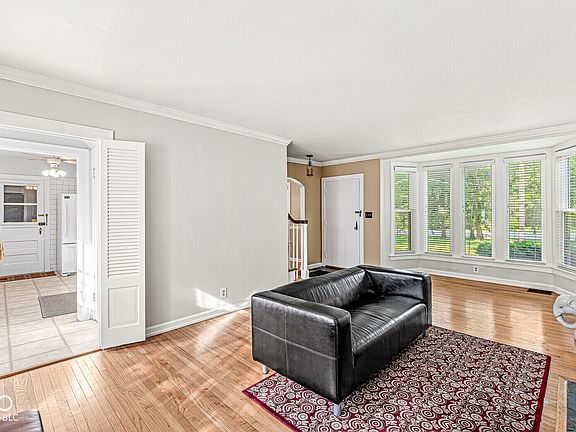 Walking/Riding distance to the new Nickel Plate Trail. It is almost finished and impressive as it travels from Fishers to downtown Indianapolis. Step inside this home and you're greeted by the rich allure of hardwood floors that stretch seamlessly throughout the entire home. The spacious living room immediately captivates with its inviting ambiance, centered around a traditional wood-burning fireplace. Connected to the living room, the dining area effortlessly flows into the kitchen, creating an ideal space for entertaining and everyday living. The kitchen boasts a functional layout, offering both efficiency and style, with ample countertop space and modern appliances. Located on the main level, the primary bedroom and a full bath offer comfortable accommodations, along with a second bedroom for added convenience. Ascend the stairs to the 3rd bedroom, occupying the entire upper level and featuring an ensuite bath for added convenience and luxury. The lower level of the home offers versatility, with a finished basement on one side, providing additional living space or recreational area, while the other side offers ample storage options to keep belongings organized and out of sight. Outside, the property extends its charm with a delightful backyard, brick patio and adorned flower beds offering a serene escape to enjoy nature's beauty and outdoor gatherings with friends and family.