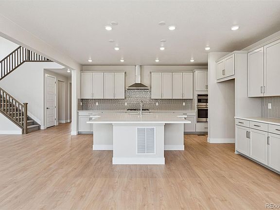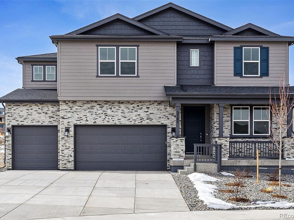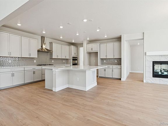 MLS#6044415 Ready Now! The extensive enhancements to the Vail at Crystal Valley make this best-selling floor plan truly spectacular. Designed for maximum livability, this home features bonus rooms and options to fit your needs. Enter through the foyer and pass the study to reach the dramatic two-story great room with a fireplace. Adjacent to the dining area is a hearth room with a double-sided fireplace. The entry and pantry offer ample storage space, and the large kitchen island makes entertaining a dream. Upstairs, you'll find three secondary bedrooms, two full baths, and a convenient laundry room. Additionally, there's an oversized storage closet and a luxurious primary suite with dual closets and sinks, plus an optional tray ceiling to complete this luxe space. Structural options include: hearth room, 14 seer A/C unit, shower in lieu of tub in secondary bath, 8' x 12' sliding glass door, 8' interior doors on secondary, owner's bath configuration 5, covered deck, modern fireplace, and unfinished basement.