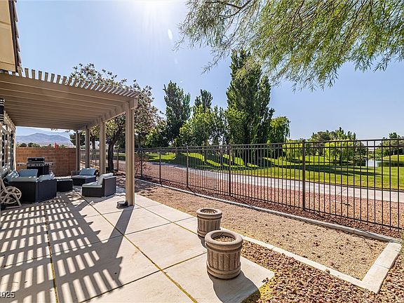 Bring your clubs and your clothes! This former William Lyon model home is ready! Like most model homes, as soon as you walk in you can feel the quality and see the upgrades. This home is very unique for Mountain Falls Golf Community as it sits directly on the 14th hole with a view of the pond and fountains. Offering 3 bedrooms all separate from each other and 1 even including a den/office....and of course all with full bathrooms, you can bring friends and family and have plenty of privacy. Real hardwood floors, custom cabinetry, large island and plenty of room for entertaining. 3 car garage with the 3rd separate and being used for the golf cart. Don't worry if you need furniture, this home can come completely furnished or not. Make sure you check out the Pro Shop, Grill Room, pools and all of the other amenities that come along with living in Mtn Falls. Minutes from the Ron Fellow Driving School and an hour from the Las Vegas International airport.