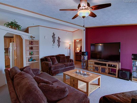 Need some peace and quiet' This well-maintained 3/3/3 rancher, located on a 2.93-acre level lot with mountain views, might be the answer. One level living with 2,300 square feet, this home is ready for move-in. Located close to Falcon schools and shopping. Large kitchen with island, breakfast counter, ample cupboard and counter space, dining/eating nook/walkout to large 36'x18' back patio (perfect for summer BBQs). Gas fireplace in family room. Large cutout between family room and kitchen. Tasteful colors throughout. Master bedroom features double walk-in closets, 10'x10' sitting/bonus room and a private attached 5-piece bath w/soaking tub. Roomy laundry room that leads into the house from the garage walkway. Ensure this one gets a look!