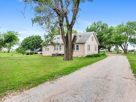 Spacious 5-bedroom, 2-bathroom home on 4.75 acres in the highly sought-after Clearwater School District! Located between Clearwater and Goddard, this unique property offers a blend of rural charm and functionality, with plenty of room for horses, livestock, chickens, or hobby farm animals. The property features several outbuildings, including a Quonset hut, 1-car garage, milk barn, covered hay barn, silo, and a single small storage shed. The main level features 3 bedrooms, 2 bathrooms, a spacious kitchen, formal dining room, main floor laundry, and an unfinished basement. The upper level offers 2 additional bedrooms, perfect for extra living space or a home office setup. One of the bathrooms, located off the mudroom, has a shower that could use refinishing. The home is ready for a little TLC and your personal updates to make it truly shine. With a brand-new roof already in place, this property is a great opportunity for those looking to create their own rural retreat.