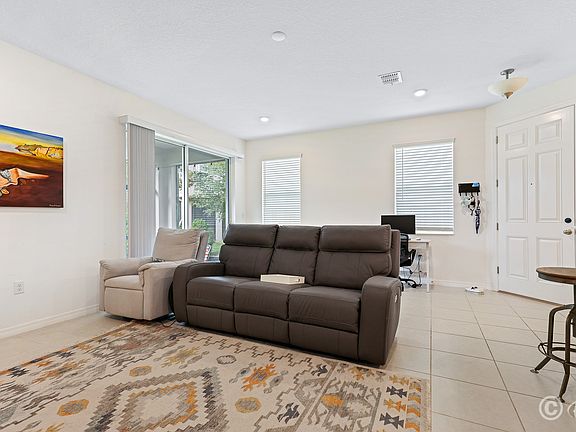 Step through sliding glass doors to the screened lanaiideal for enjoying Florida's year-round sunshine.