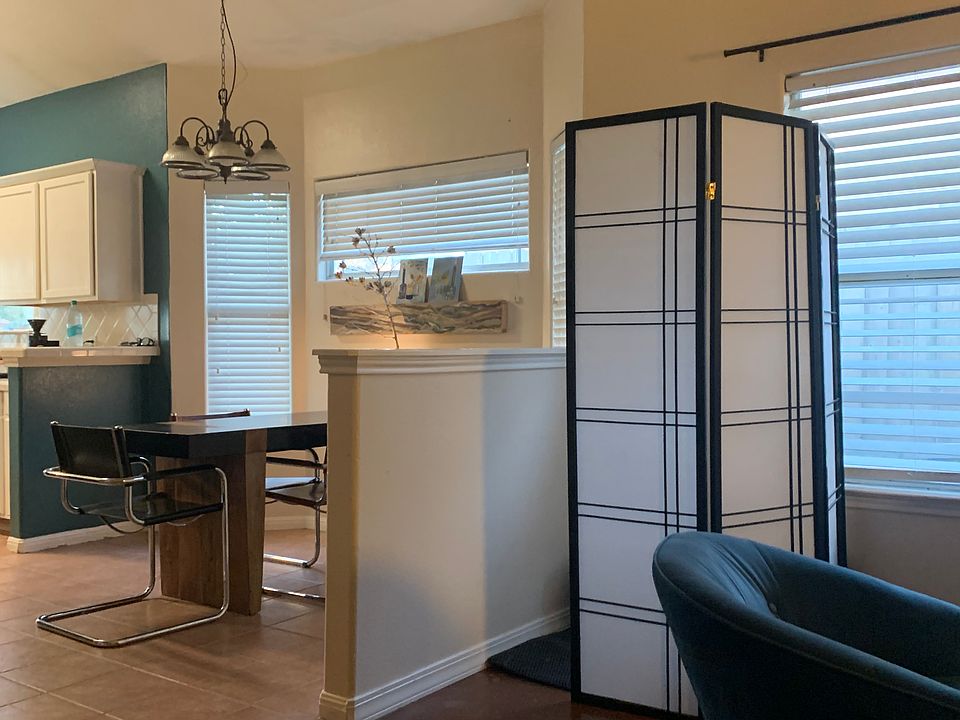 Cute 3-bedroom home on Austin's East Side 10 minutes from Mueller shops and restaurants. 14-foot ceilings create spacious, airy atmosphere. 1 mile from 183 and greenbelt. Pets ok. Renter responsible for utilities. Garage parking. No pet fee.