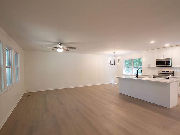 A complete renovation on this split level home in Hampton Estates! Open living/dining space with recessed lighting and new LVP flooring throughout. Modern kitchen features center island with breakfast bar, stone countertops and plenty of counter and cabinet space. Master bedroom with large closet and NEW en-suite bath. Additional bedrooms and NEW full bath for kids or guests! Downstairs den/family room with gas fireplace and double doors that open to the back patio. Open deck on the back of the home overlooking the flat backyard. Large storage shed for tools and lawn equipment and fresh landscaping with new shrubs. Single car garage has extra storage space and laundry area. Home is conveniently located to I459 and Grants Mill Road.