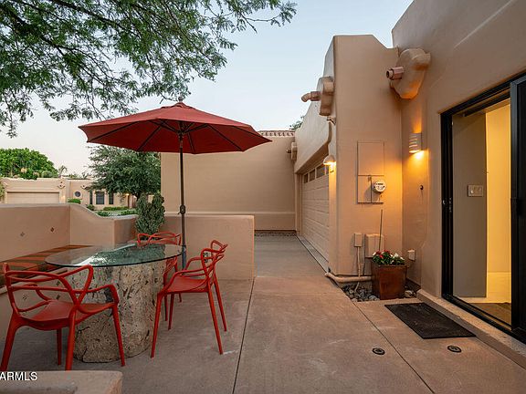 Discover luxury living in the heart of Scottsdale, near top shopping & dining. This exquisite home boasts soaring ceilings, a cozy living room, elegant dining room with atrium views, and a serene den. The chef's kitchen features a modern Bulthaup design with Thermador Induction range and appliances, Sub Zero refrigerator and an inviting front patio. The master suite includes blackout shades, spa- like bathroom, and convenient laundry access. A spacious guest suite, which can be easily converted to a 3rd bedroom, loft workspace, and a 7,000 sq. ft. landscaped yard complete this stunning property. Perfect for those who appreciate refinement and location.