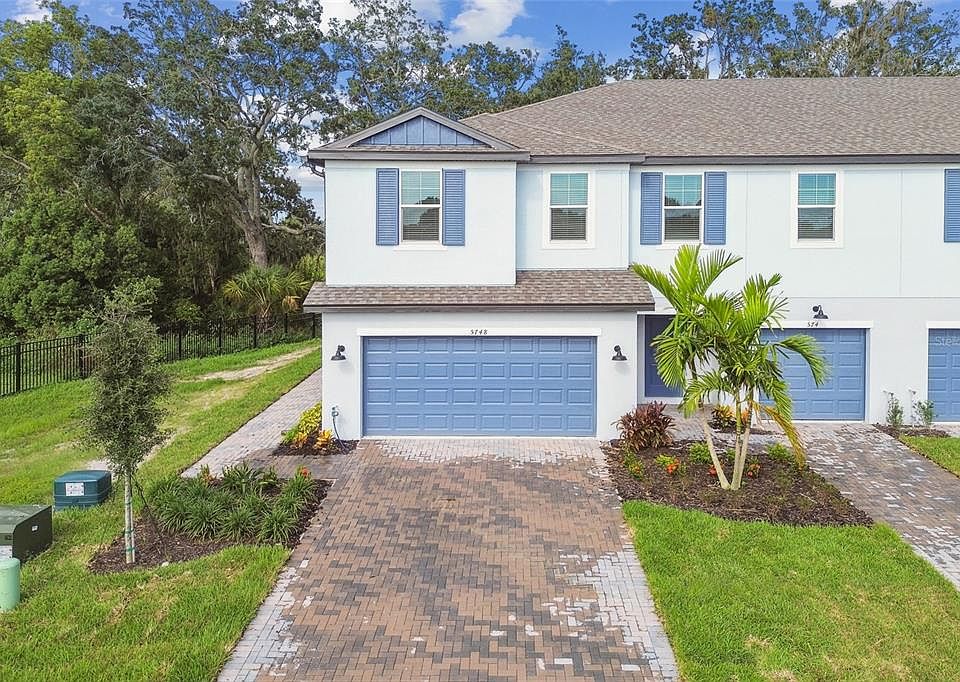 Under Construction. Welcome home to the brand new Sabal in The Palms at Trevesta. The Sabal is a spacious end-unit townhome and part of the first ever Smart Series townhomes from M/I Homes – Sarasota. Spread across 1,860 square feet, the Sabal features three bedrooms, two and a half bathrooms, a two-car garage and upstairs loft. Enter through beautiful landscaping right into the heart of the home. A half bath powder room is set to the side, while the main view is comprised of the kitchen, dining, and great room area. A gourmet chef's kitchen with beautiful cabinets and countertops, and well-appointed finishes surround a center island with a double basin sink. A dining area lines one wall and opens into the great room with two large windows for cascading sunshine. Head out to the enclosed lanai with Florida nature views. You’ll love this special space for enjoying a morning cup of coffee or relaxing after a long day. Head upstairs where the loft, laundry room, and bedrooms reside. Two bedrooms share a full bathroom. The owner's suite is tucked towards the back of the home for extra peace and privacy. The spacious closet is a highlight, with enough space for clothes and added storage. Escape to the tranquil owner's bathroom where you'll have dual vanities and a framed shower enclosure. ****SPECIAL FINANCING AVAILABLE ON FHA OR VA LOANS ONLY FOR A LIMITED TIME ONLY FROM PREFERRED LENDER. RESTRICTIONS APPLY, FOR QUALIFIED BUYERS, SUBJECT TO APPLICABLE TERMS AND CONDITIONS. MUST CLOSE ON OR BEFORE 12/31/24. SUBJECT TO CHANGE WITHOUT NOTICE****