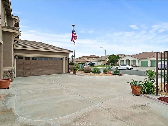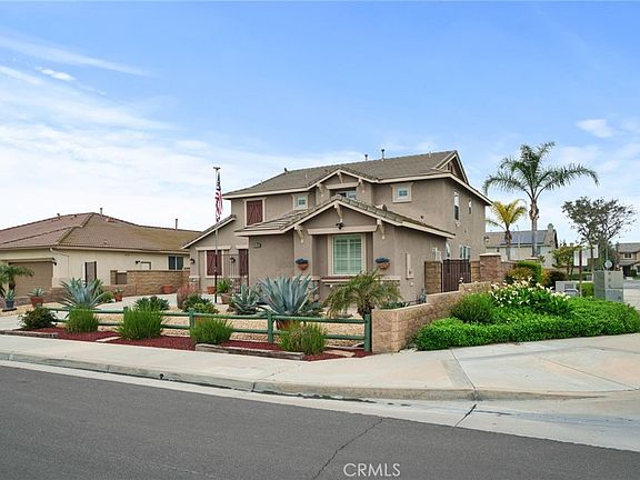 Nestled in the heart of Eastvale, this captivating home sits on a generous corner lot, boasting 2762 square feet of living space. With 4 bedrooms and 3 1/2 bathrooms, including a primary bedroom on each floor, it's an ideal haven for guests or multi-generational living. The property spans nearly 10,000 square feet, offering ample space for outdoor enjoyment. Stepping inside, you're welcomed by sleek tile flooring that seamlessly guides you through the main level. Entertain effortlessly in the well-appointed kitchen, featuring a center island, granite tile countertops, double oven, and abundant cabinet space. Downstairs, a spacious retreat awaits, complete with a private bath and second laundry area. Ascend upstairs to discover an inviting loft, perfect for a cozy family room or game area. The master suite beckons with its generous proportions, dual closets, dual sinks, deep soaking tub, and walk-in shower. The main laundry room is located upstairs in the hallway, which is currently set up as an office, but has connections for laundry connections. Throughout the home, ceiling fans ensure year-round comfort. Step outside to the low maintenance backyard oasis, complete with a covered private spa and 2 storage sheds. Conveniently located just minutes from Eastvale's popular shopping, dining options, and major freeways, this property offers the perfect blend of comfort and convenience. With no HOA, seize the opportunity to make this your dream home. Schedule your private showing today!