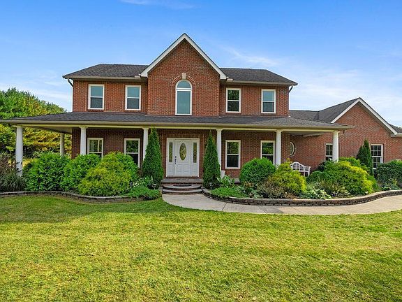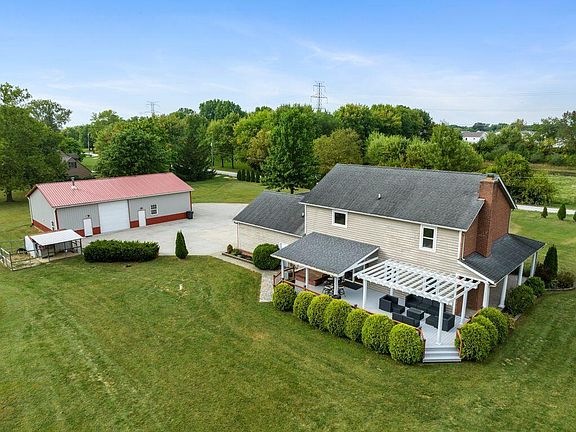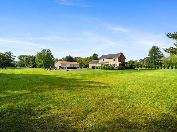 Welcome home to this pristine 2 story brick home situated on almost 3 acres! Seller has upgraded nearly everything including renovated kitchen and bathrooms, hardwood floors throughout, kinetico water softener system, new windows 2021, brand new composite covered deck. Additional features include beautiful wrap around porch, 2 car side load garage and massive 2,000 sq ft pole barn with a full bathroom & sauna and loads of parking on the spacious circular concrete driveway. Additionally, the finished basement adds roughly 1000 sq ft and includes a rec room, guest room and full bathroom. Plus a dog run! There is too much to list! Come check this one out yourself!!