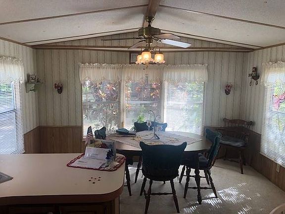 Welcome to your own oasis in this small out of the way 55+ park with only $300 lot rent and they allow pets! Large lot feel like you are always on vacation. This home is being sold partially furnished, shingle roof. Living room is 13x15 and carpeted comes with sofa, love seat, rocker and chair. Dining area comes with table and 6 chairs Kitchen has breakfast bar and lots of counter space Master bedroom is nice size with master bath Guest bedroom is 10x11 To make an appointment call Alan All listing information is deemed reliable but not guaranteed and should be independently verified through personal inspection by appropriate professionals. American Mobile Home Sales of Tampa Bay, Inc. cannot guarantee or warrant the accuracy of this information or condition of this property. All measurements are approximate. The buyer assumes full responsibility for obtaining all current rates of lot rent, fees, or pass-on costs associated with the community, park, or home from the community/park manager. American Mobile Home Sales of Tampa Bay, Inc. is not responsible for quoting of said fees.