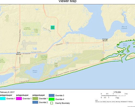 40 ACRES in prime location near Gulf Shores, Orange Beach and Beach Express ICW Bridge. Zoned B3 General Business. 1320 feet of frontage on Roscoe Rd just North of Toll Bridge with excellent access to Beach Express. High traffic count and unincorporated (not in GS or OB city Limits) ready for your development. All utilities on Roscoe Rd. Suitable for residential or light commercial development.
