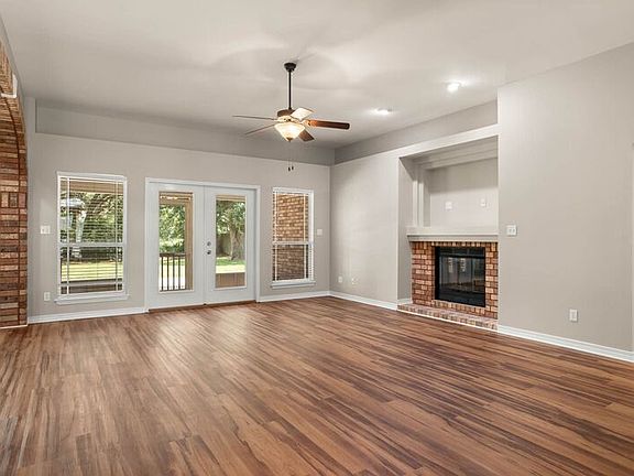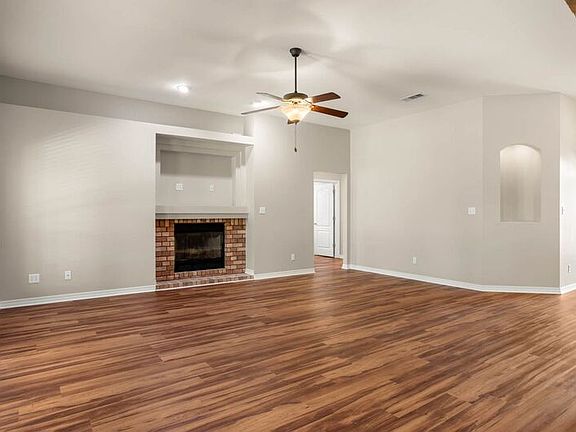 This beautiful 4-bedroom, 3-bath home offers 2,400 sq. ft. of comfortable living space and a split floor plan designed for added privacy. Stepping inside, you'll find a spacious great room featuring vaulted ceilings, plant ledges, a charming brick fireplace, and double doors leading to the screened-in patio.