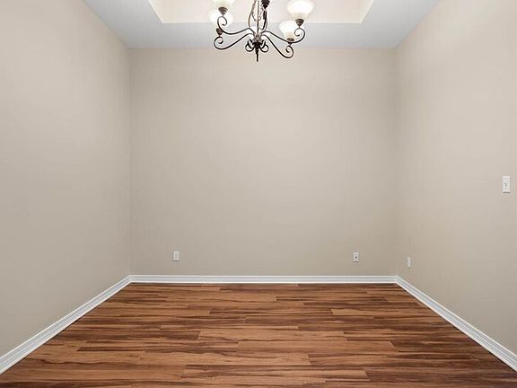 The primary suite is generously sized and boasts a tray ceiling with fan, a massive walk-in closet, and an ensuite bath with dual vanities, a garden tub, separate shower, and private water closet. Three additional bedrooms and two full baths complete the home.