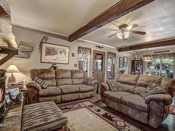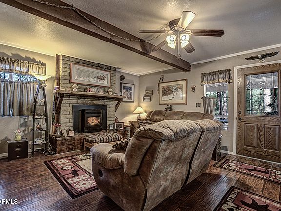 Tucked among towering pines, this charming cabin is the perfect getaway! Step inside to a warm and inviting living room with a pellet stove. The kitchen has been nicely upgraded with stainless steel appliances and newer cabinetry. The main-level bedroom room comes with a full bath for easy convenience. Upstairs, you will find two additional bedrooms and half bath--plenty of space for family and guests. The real heart of this home is the stunning family room with beautiful pine walls and ceiling--this is where you will want to spend all of your time! Enjoy your morning coffee on the covered front porch, store all your gear in the single-car garage and workshop,,, and soak in the peaceful surroundings. If you ae looking for a cozy mountain escape, this is it!