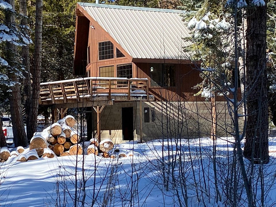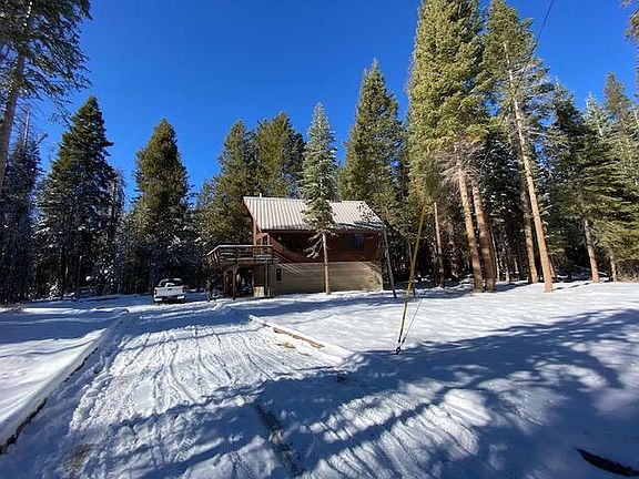 This is THE perfect mountain cabin. It is a 3 level home with the garage/shop on the lowest level. On the second level is the open living/dining/kitchen with beautiful vaulted ceilings. There is also 1 bedroom and 1 bath on this level. The upper level is another huge bedroom and bath. This bedroom easily fits 4 beds. Additional storage in this level also. The home has custom woodwork of red cedar on ceilings and walls with some solid pieces of oak trim and solid oak custom cabinetry in the kitchen. New Berber carpet on the stairs and upper level. All woodwork inside and out has been refinished. New water heater, new bathroom fixtures and toilets, new spark arrester on roof, resurfaced driveway with 5 tons of road base and a defined parking area that accommodates 4 cars. And if all this is not enough, the sale includes a separate lot with it's own APN# adjacent and to the north so that you will always have plenty of room and a new snow blower.