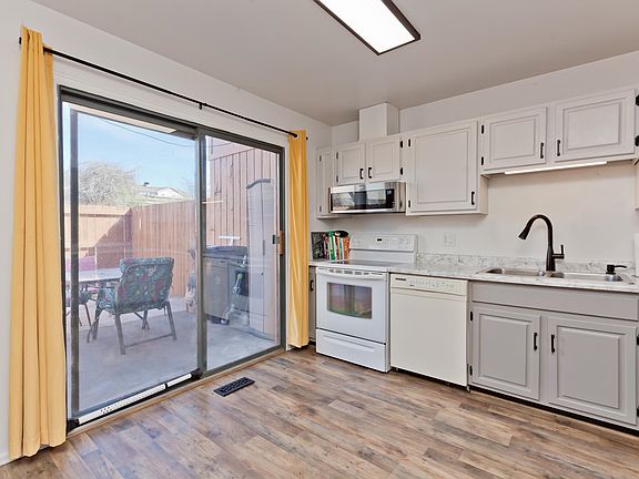 Super cute town home with covered two car carport in Cedar Terrace! This lovely home offers lock and leave convenience. On the main level, you will find the large kitchen/dining area, large living room which is complete with fireplace for those chilly nights and also a half bath off the kitchen. All nice size bedrooms are located on the second level along with the washer and dryer, plus a full and 3/4 bath. Primary bedroom has two closets and a walk-out patio to enjoy the views. Step out back to your very own privacy fenced back patio. Buffet in kitchen with granite top and TV stand (only) in living room are included. Property backs to open area. RV parking is available and the HOA covers exterior maintenance and front landscaping.