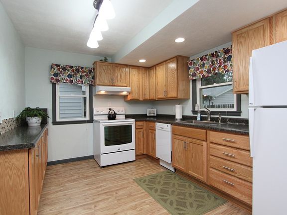 Pristine home with updates galore: KI, baths, carpet, gutters, windows & more! Main level BR w/full bath & 2 BRs up w/full bath! Insulated garage w/attached 21x8 storage shed. Fenced yard w/ lovely trees. Great nghd central to shopping & major hi-ways.
