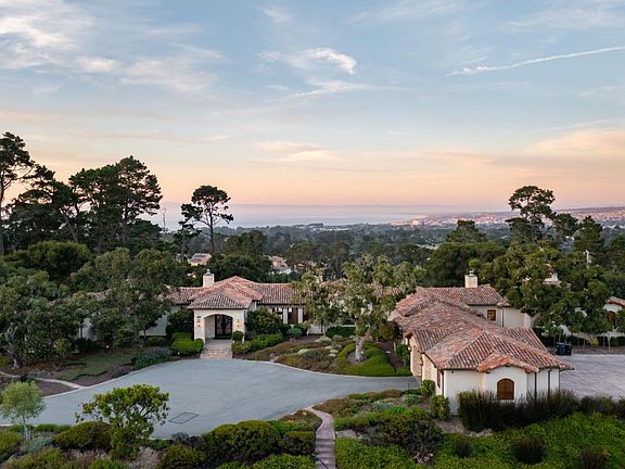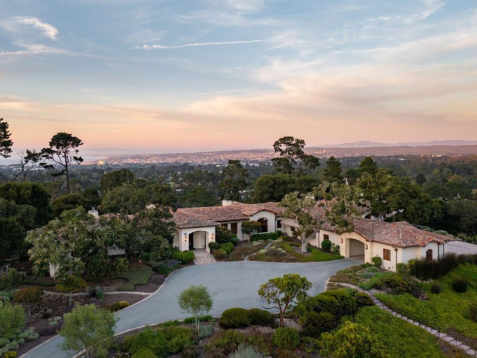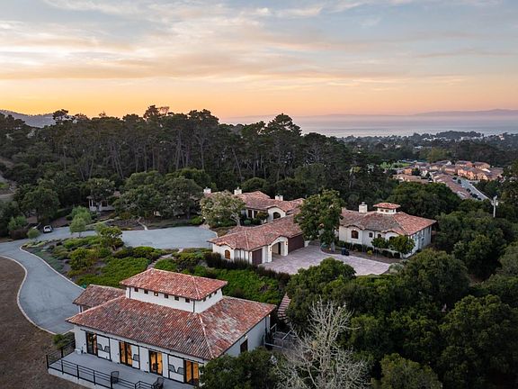 Perched on Gentry Hill in Jacks Peak, this stunning 7-acre estate offers panoramic views of Monterey Bay by day & magical city lights by night. Designed for luxurious single-level living, the 6000+ sqft home boasts expansive rooms filled with natural light, an ocean view primary suite, 4 guest bedrooms, formal dining, library & separate 2 bedroom caretakers cottage. Featuring a large finished stable offering endless possibilities as an equestrian barn, workshop, garage for car or motorcycle collections, or entertaining space. A sprawling 3,500+ sqft oceanview terrace, with outdoor kitchen & fireplace, is perfect for hosting gatherings small & large. Open kitchen with breakfast nook & luxurious finishes throughout including elegant stone & reclaimed wood details. The gated property balances grandeur with understated elegance & character. Highlights include a private well, 5,000-gallon storage tank, & 3 car garage, making it a blend of luxury & livability, all just mins from Carmel, Pebble Beach & the airport.
