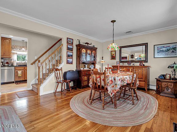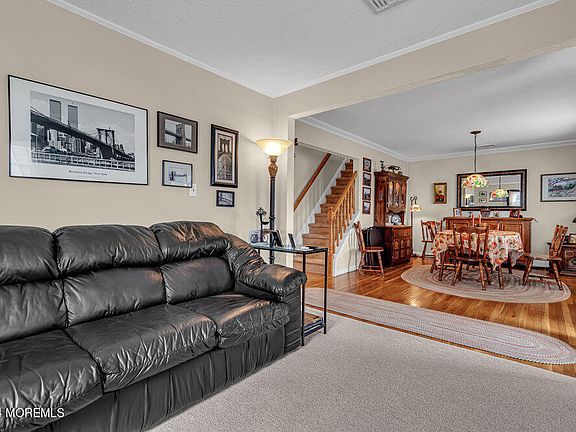 As you enter this charming home, you're greeted by a cozy living room featuring an electric fireplace, setting the perfect ambiance. The elegant dining room is complete with crown molding and gleaming hardwood floors. On the main level, there's a versatile bedroom that could double as a home office, along with a full bathroom. The galley-style kitchen boasts granite countertops, stainless steel appliances, and ample cabinet space, making it both functional and stylish. The finished basement is ideal for entertaining, offering a TV room with a bar and a separate area perfect for a guest bedroom. You'll also find a laundry room and a convenient half bathroom on this level. Upstairs is a cozy bedroom with wall-to-wall carpeting, along with a bonus room featuring hardwood floors. Down the hall is a full bathroom with a stand-up shower, granite countertops, and generous storage space. The master bedroom at the end of the hall includes a spacious walk in closet with custom shelving. In the backyard, the fenced in space is perfect for entertaining!