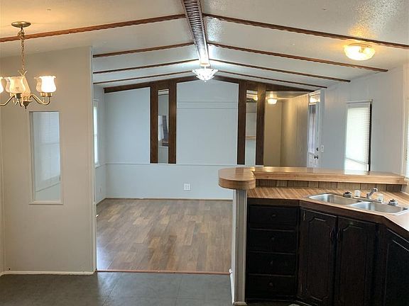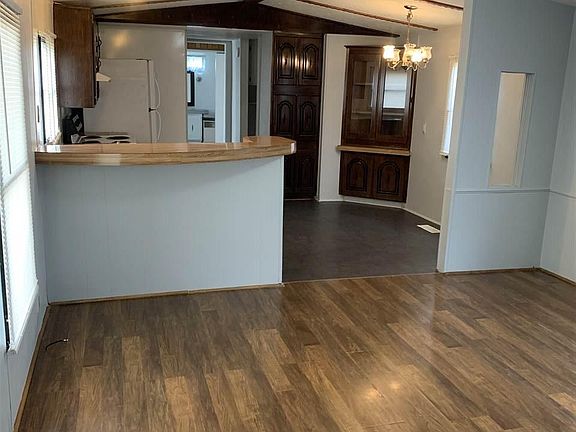 Move in ready 3 bedroom, 2 bath single wide mobile home on a private lot. Features include, new carpet, eat in kitchen bar, master walk in closet, dining area built ins, laundry cabinets & shelves, covered front porch, back deck, and storage building. Appliances include: electric range, range hood, and refrigerator. Additional amenities provided by the owner: Waste removal service and lawn maintenance.