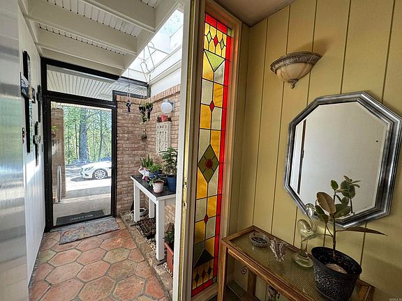 One of the coolest condo designs in the area. This 3 bed 2 bath one level is a true work of architectural art. End unit in a smaller complex with only 11 units in total. The complex overlooks a retired golf course that has become a fantastic greenbelt walking area and nature preserve. A pool front and center to take a summer plunge. The covered wrap around lanai is an additional gem. Some TLC and minor updates brings this original builders unit back to the prestige it once was. Parking for 3 cars and outside storage. Main living property or a fantastic lock & leave while you travel. Hot Springs is a great spot for a home base and this location provides all the best the area offers.