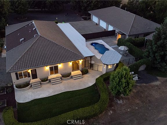 The expansive 8.5-acre property includes a flourishing Chandler walnut orchard, providing a picturesque backdrop and potential income.