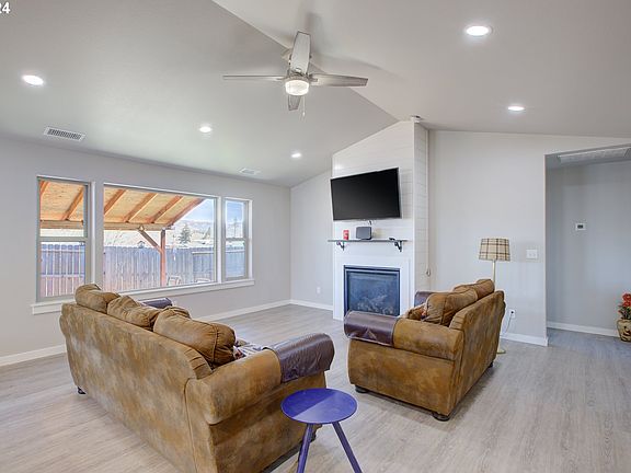 Situated within a charming newer neighborhood, this home provides a delightful view of the picturesque hills to the east, best enjoyed from the cozy living room featuring a gas fireplace. Designed with a modern open concept, it cleverly separates the primary suite from the second and third bedrooms, ensuring privacy and comfort for all. With vinyl flooring throughout, a gas range, convenient laundry facilities, and indulgent walk-in showers, this home offers a host of personal touches to elevate your everyday living experience.