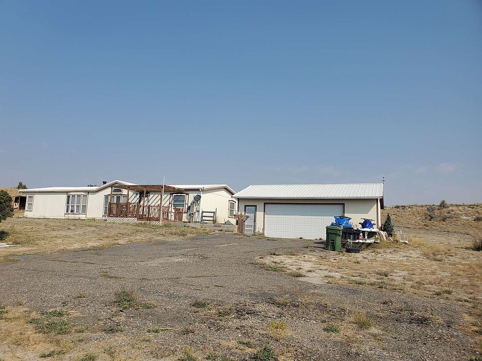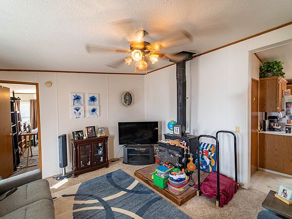 Walk into this spacious modular home which features two large living rooms, 3 bedrooms and 3 bathrooms. Home as a wood stove for those cold winter nights. Kitchen has double electric oven and a separate cook top with plenty of counter space. The master bedroom has separate his and hers walk in closets and the master bathroom has a separate walk in shower or sit and soak in the garden tub after a long day at work. Home comes with a 768 square foot detached two car garage, and two separate storage sheds in the back of the house. Yard does have a sprinkler system but does not work at this time. Home is on a permanent foundation just needs paperwork done to turn into real property which will be completed by close of escrow.