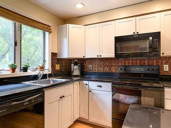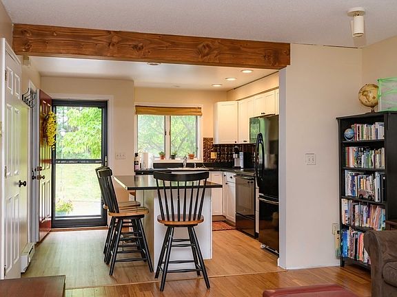 The remodeled kitchen in this unit has created a large open concept room, incorporating a dining and living room area with new flooring throughout. The 1st floor half bath has a pocket door, which maximizes and streamlines space. Upstairs you'll find a full bathroom and two large bedrooms with generous closets. We now spend more time at home than ever before and this unit offers 3 complete levels of accommodating living areas. The finished lower level with custom built in maple shelving would make a great media, play, or learning room. It also offers a great solution for working from home - it is separate enough from the other floors that you could work for the day, come upstairs and close the door at the end of the "shift". No storage capacity has been sacrificed as there is another room off of the finished area that would be ideal for the usual basement stuff. The Gables is 5 minutes from Look Park, a short distance to the Northampton Bikeway, & very easy access to everywhere else!